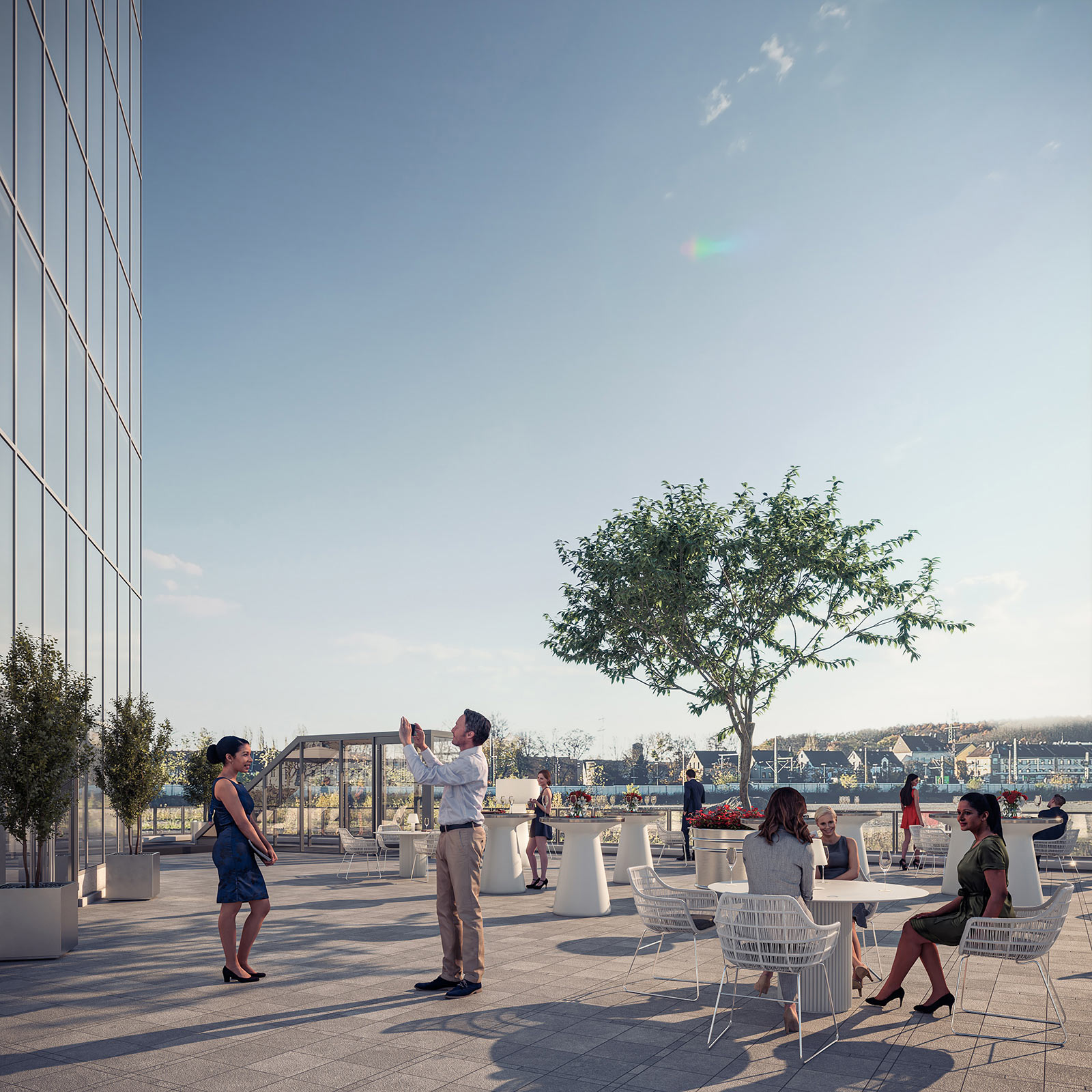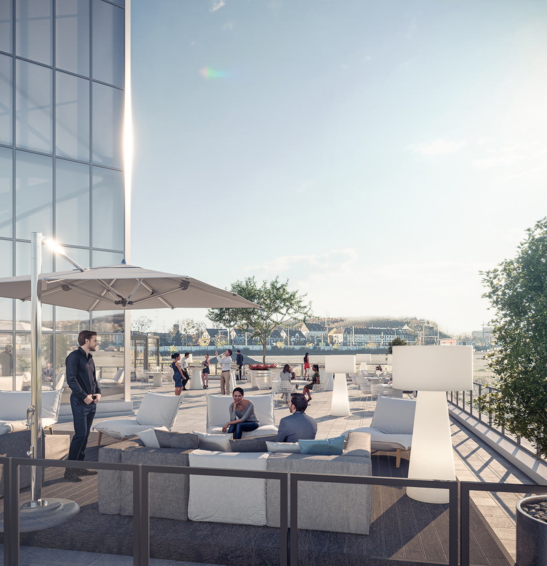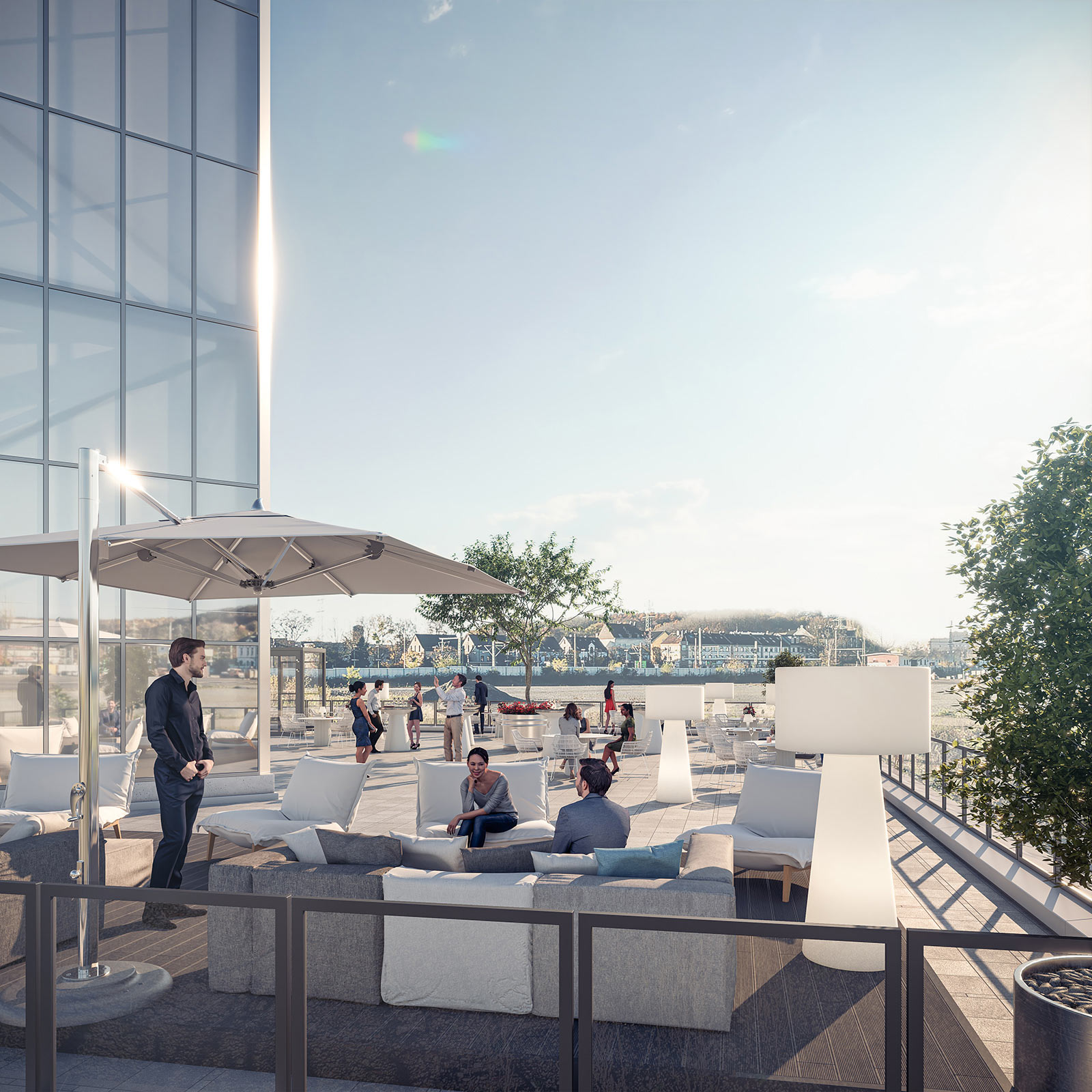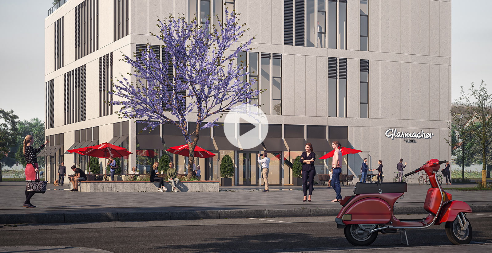 Die Visualisierungen zeigen sowohl die zukünftige Architektur, als auch die Nutzungsmöglichkeiten der Dachterrasse sowie der Außenbereiche – und damit den Mehrwert für die zukünftigen Bewohner des Quartiers.