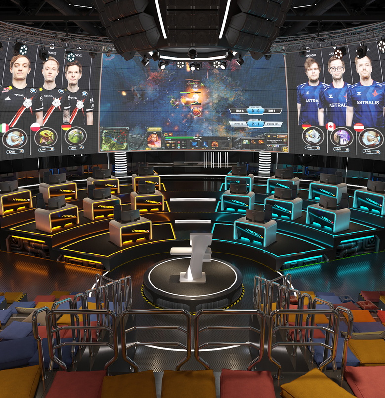 Die "Arena" ist der Ort, an dem zwei E-Sport-Teams vor Publikum gegeneinander antreten können.