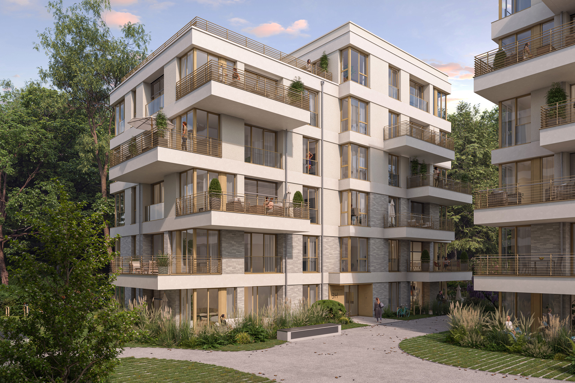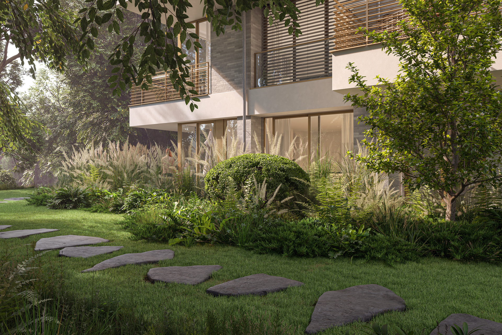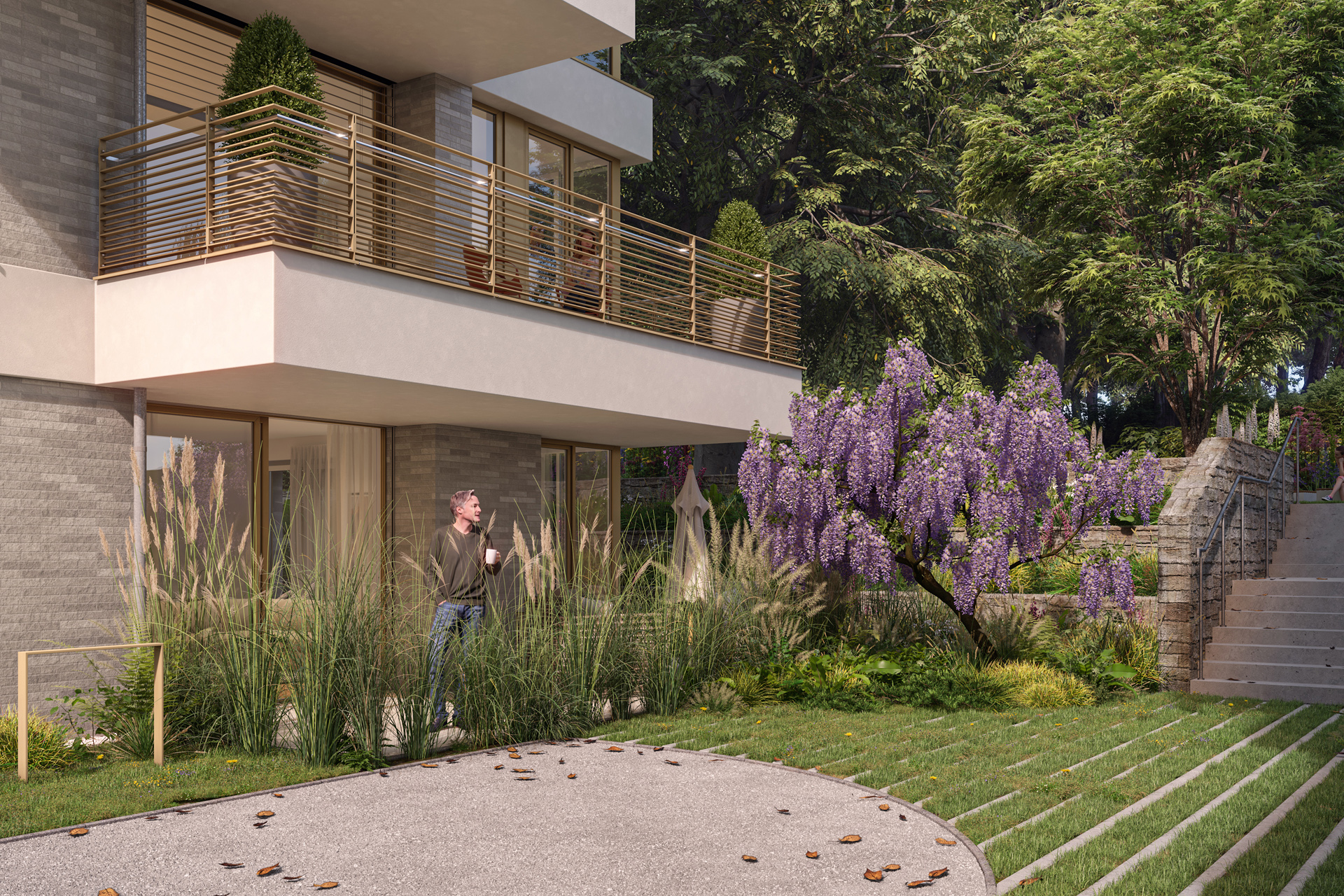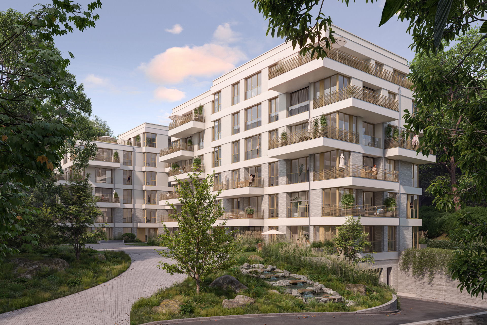 Künstlich, oder natürlich? Natürlich künstlich! Bei der Projektentwicklung DREIKLANG am Grafenberger Wald, spielt die realistische Abbildung der Natur, des ehrwürdigen Baumbestandes und damit die traumhafte Aufenthaltsqualität eine mindestens ebenso wichtige Rolle, wie die Darstellung der Architektur.